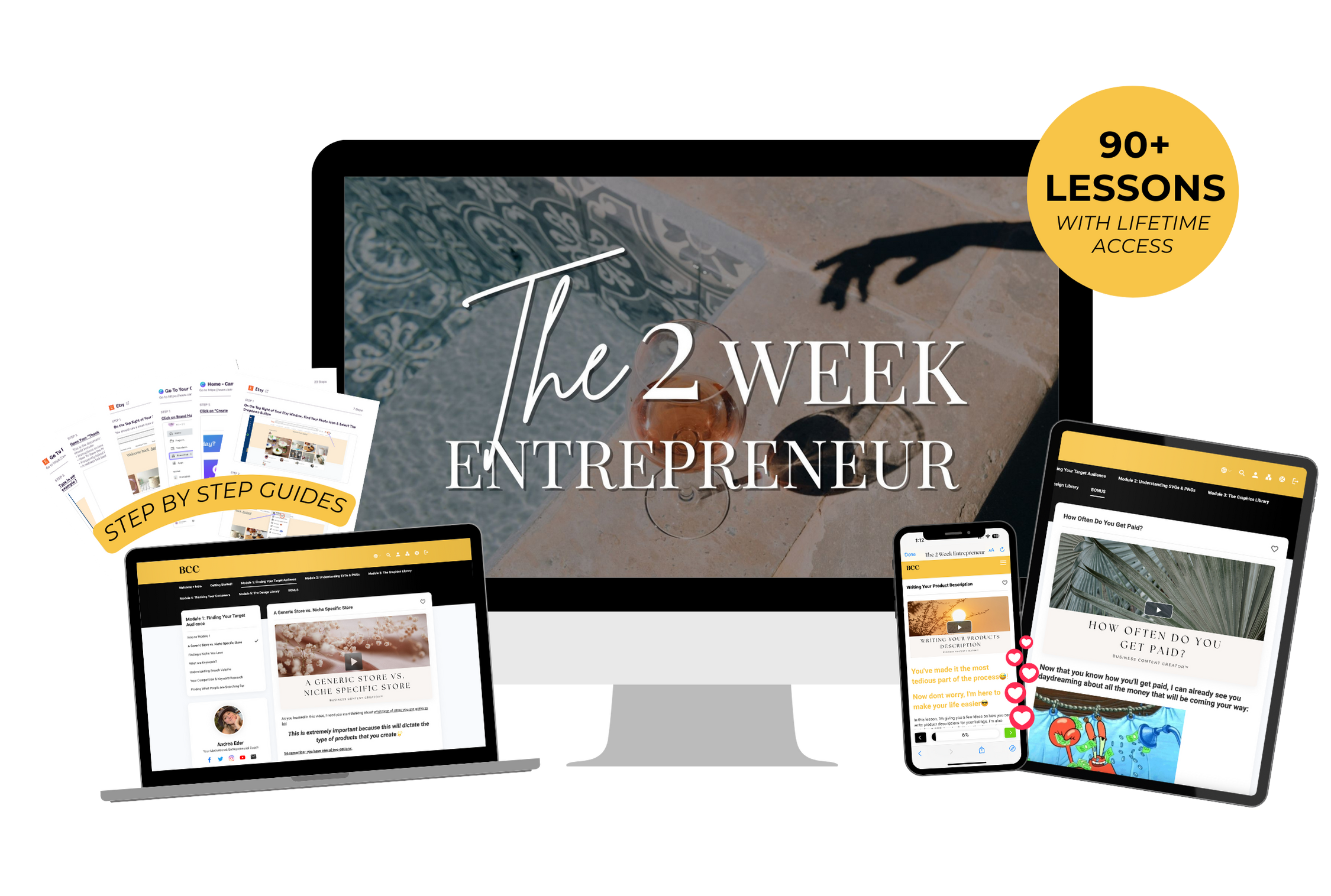As soon as you sign up, you will get access to your BCC portal! There you will get instant access to the course which also includes: LIFETIME ACCESS!