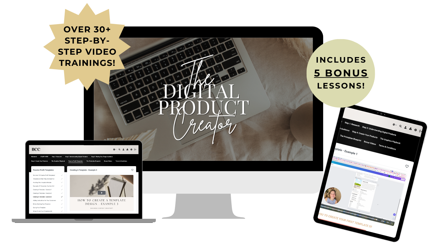 With our step-by-step videos, you will have all the tools and skills necessary to create your very own digital products that stand out online and make you passive income!